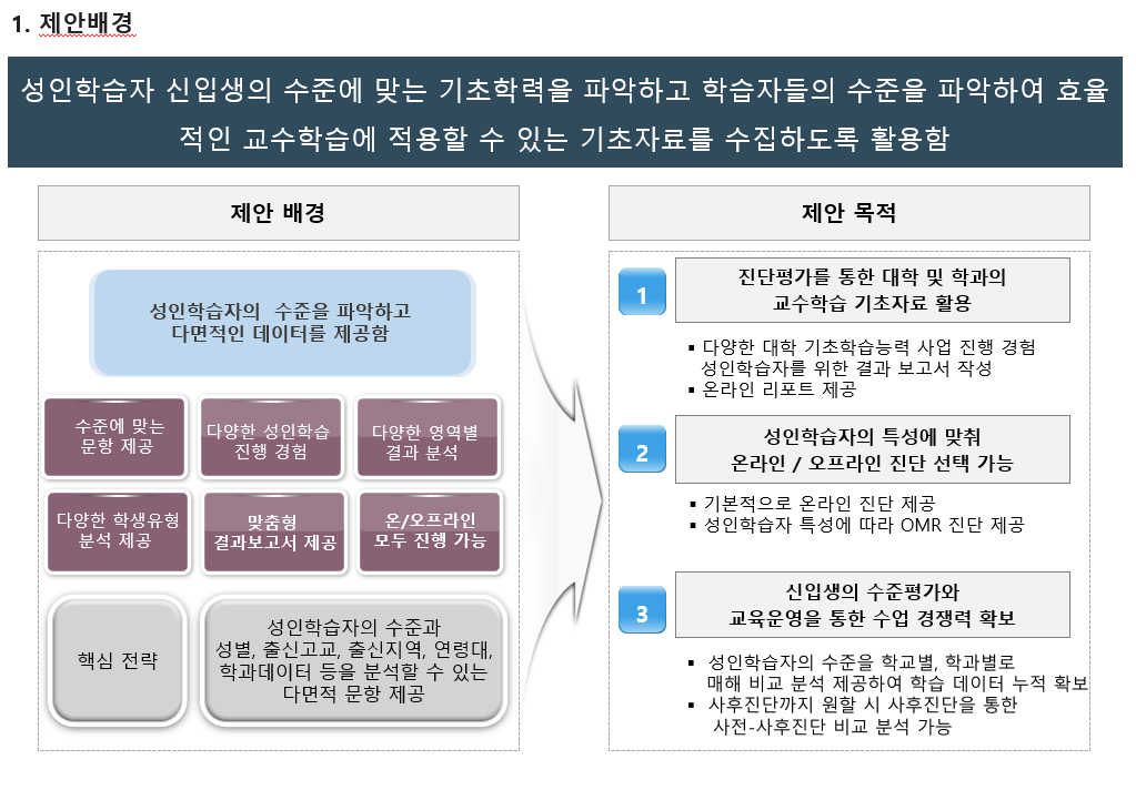 성인학습자를 대상으로 기초학습능력진단 외 만족도 조사, FGI 프로그램, 델파이조사 등 연계사업도 진행하고 있습니다.